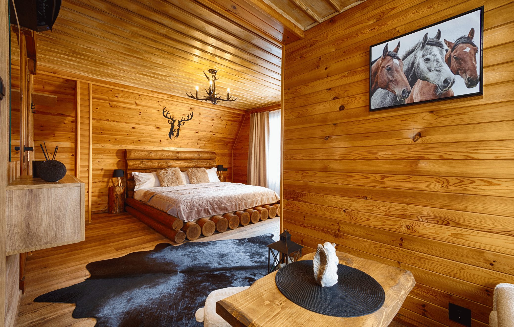Construcción de piedra y madera de pino en las faldas del Nevado. Posee una chimenea funcional de gran tamaño y ventanales con vista al bosque. La decoración es rústica-contemporánea, creando un ambiente cálido para reuniones de integración.