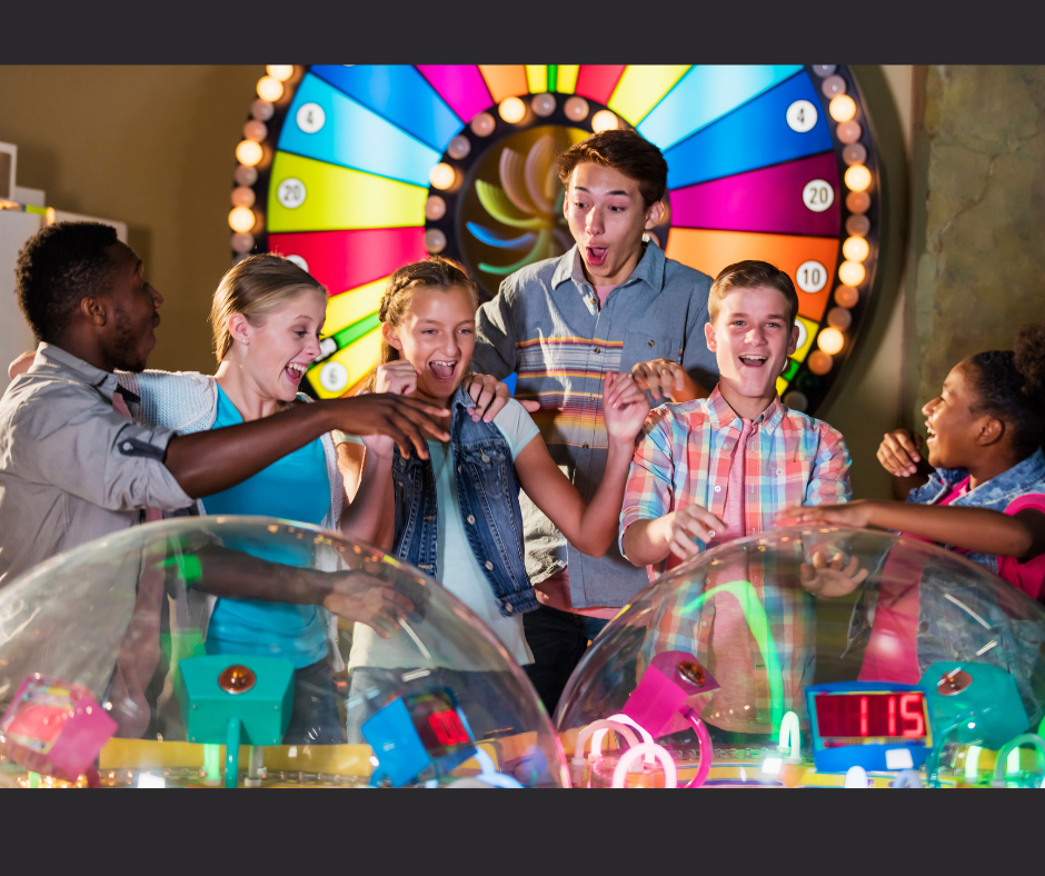 Salón de eventos para niños y jovenes que disfrutan de los video juegos clásicos, arcade y juegos de mesa interactivos